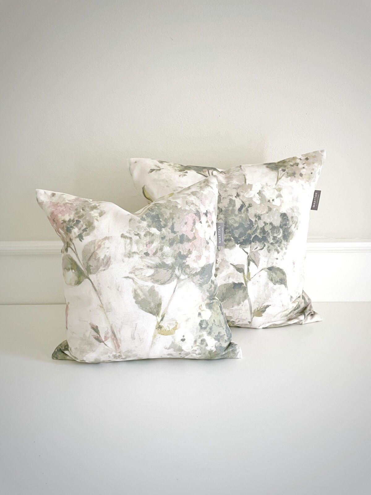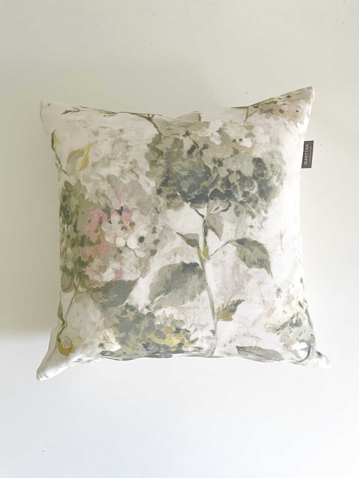 Bavlněná povlak s květinovým vzorem. Moderní pojetí nadčasových impresionistických potisků, inspirované přírodním prostředím evokující zamlžená podzimní rána. Pro všechny milovníky Hortenzií. Materiál: 100% bavlna , praní 30°C, zip